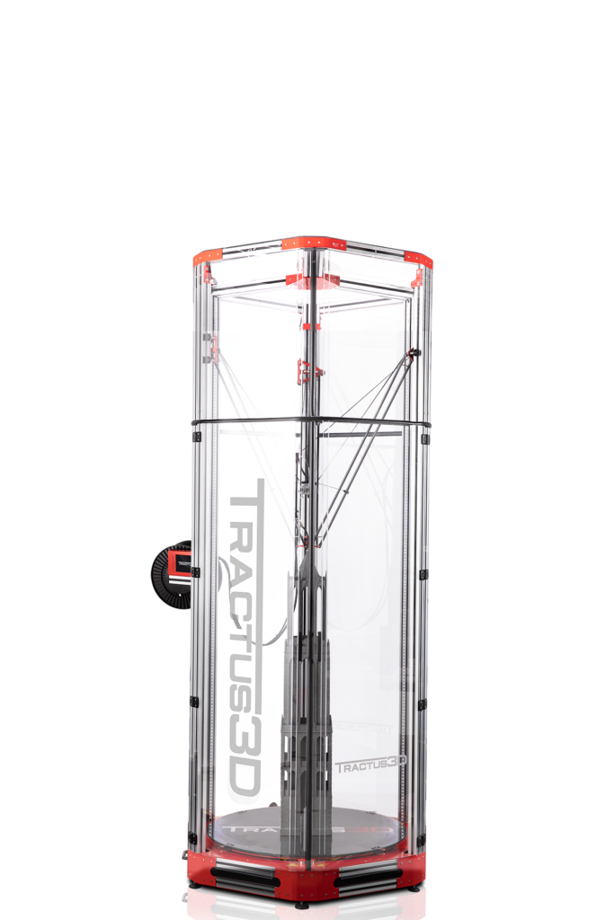 Med sig tar de en 3D-skrivare för storformat, T2000 från Tractus3D. T2000 arbetar med den så kallade filament-tekniken FFF, Fused Filament Fabrication, och kan printa 68 centimeter i diameter och en meter i höjd. Med sig har de även desktopmodellen T1250.