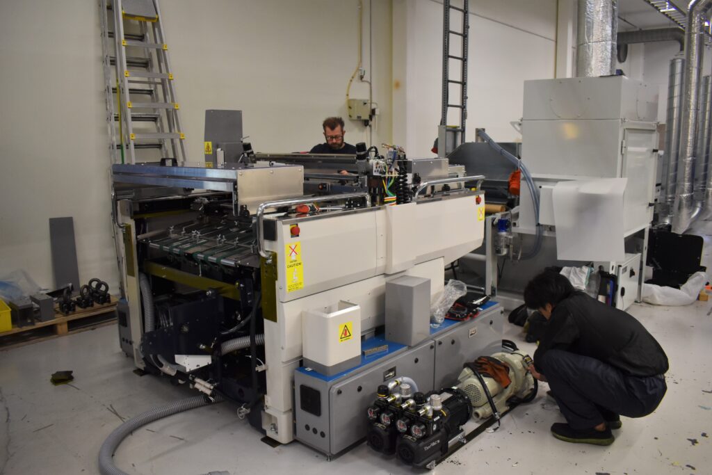 Efter två dagars installation och testkörningar ska den nya tryckpressen sättas i produktion.