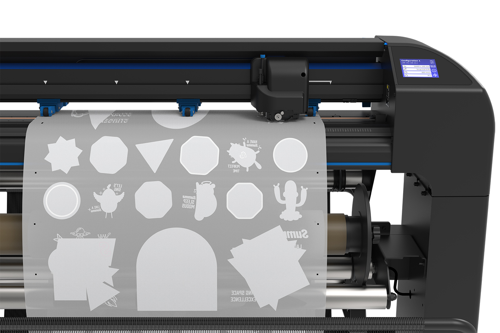 Den nya maskinen kommer med ett friktionsfritt rullmatningssystem för att optimera print & cut-flödet. Den erbjuder också Summas tangentiella skärteknologi, kamerateknik och produktionsprogramvaran GoSign.