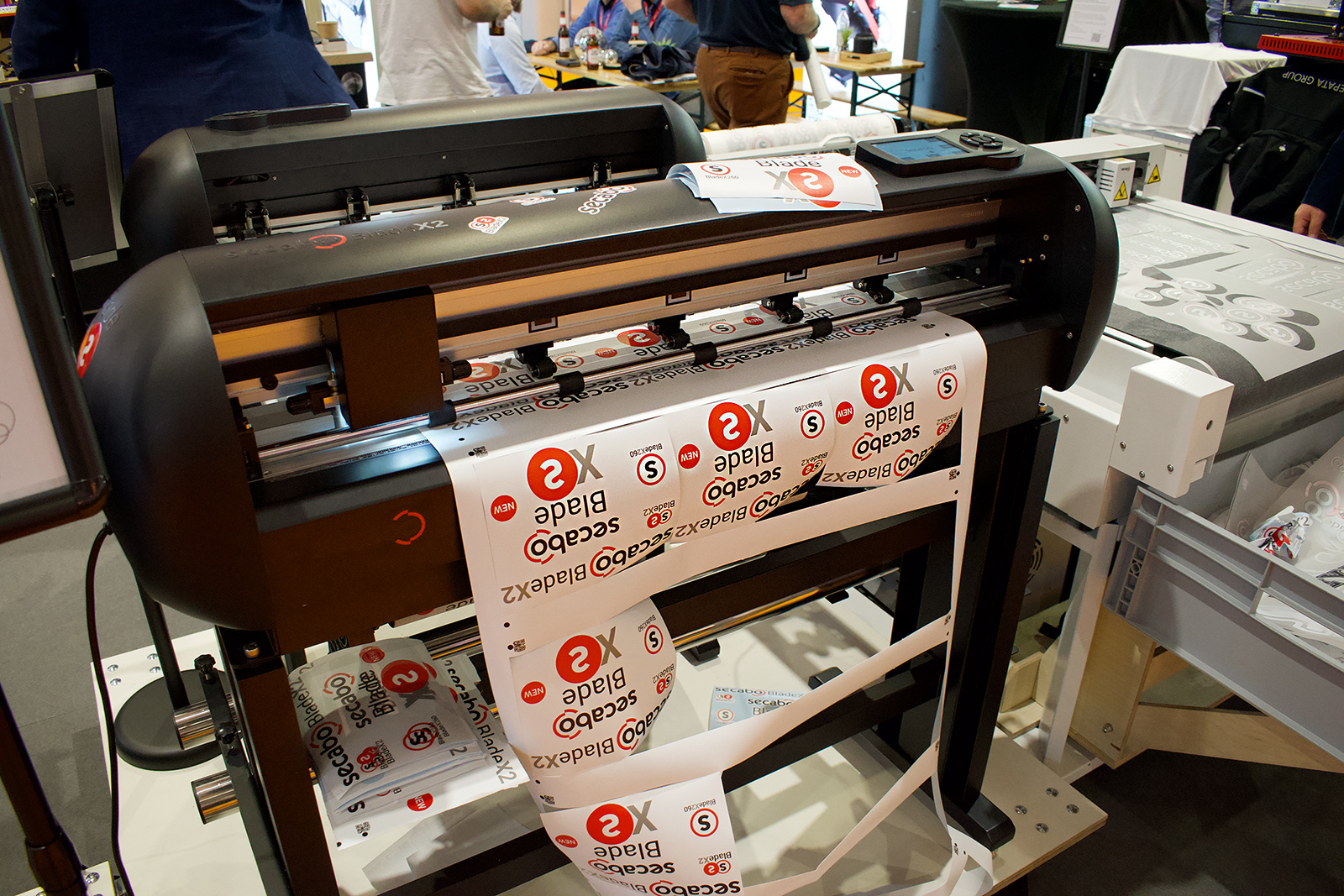 Secabo visade också sin helt nya print and cut, Blade X2. Den är en skärlösning för DTF-transfer, UV-klistermärken, etikettproduktion med mer. Den är utrustad med skärsystem med dubbla huvuden och kan utföra olika typer av skärning samtidigt.