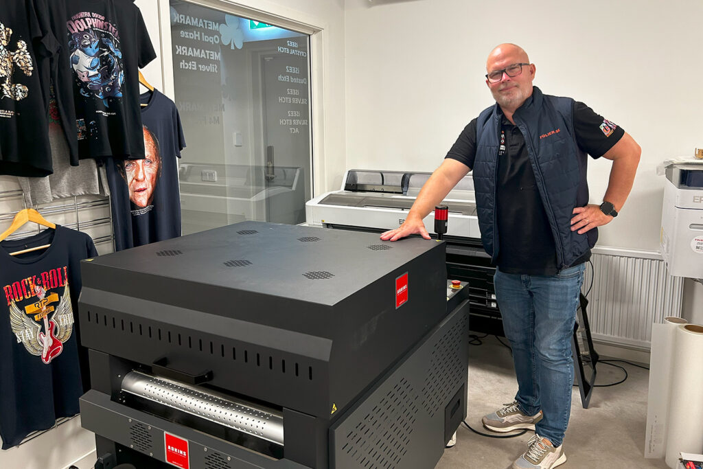 – Vi har nischat in oss på textilsidan och det är där vår målgrupp finns. Om det så gäller sublimering, värmetransfers, skärning, DTG eller DTF. Vi riktar oss såväl till större företag som säljer arbetskläder som till det mindre lokala profiltryckeriet på orten, det är mycket print on demand. Det är en bra marknad för oss och något vi blivit duktiga på, säger Richard Rindelaub.