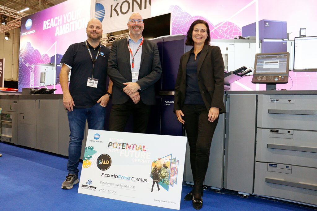 Konica Minolta fick anledning att fira redan under första mässdagen efter försäljning av en AccurioPress C14010S med inline efterbehandling till LO-ägda Bantorget Grafiska, som nu är redo för ett intensivt valår.
