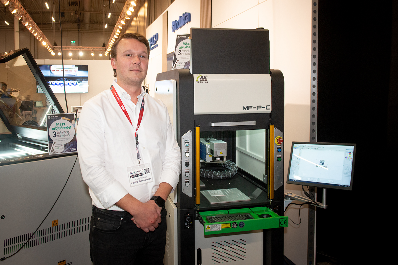 – UV-laser är en teknik som vi inte haft tidigare som gör att vi kan komma ut mer mot industrikunder. Det är väldigt vanligt att kunder vill märka sin produkter och då är den suverän för du kan märka alla möjliga material. Innan har vi endast haft CO2 eller fiber. Här får du alla produkter i samma laserkälla, säger Jimmy Thedvall på Indukta Technologies.