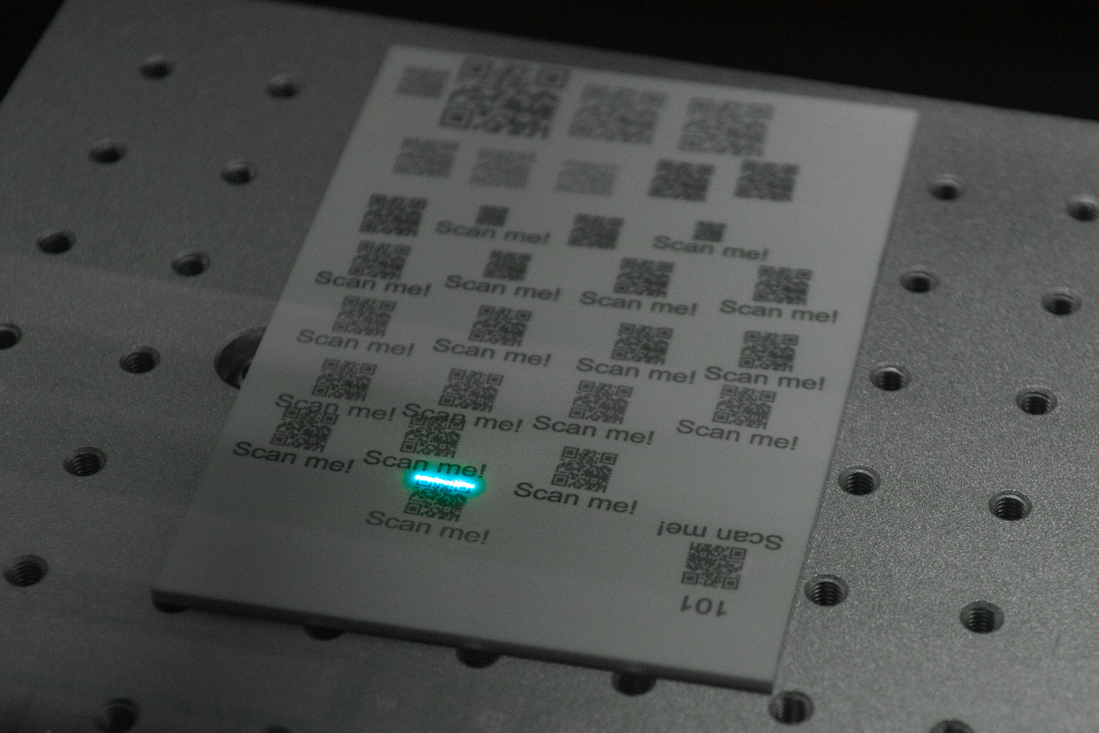 – Det är typiskt en sådan grej du kan ha när du har produktion. För QR-koder kan du generera unikt och väldigt fort utan att få med en stor text på plattan. Det funkar utmärkt att scanna fast den inte är mer än åtta millimeter. Du får en hög upplösning till och med där. Maskinen är väldigt snabbt och skarp i sin märkning, säger Jimmy Thedvall.