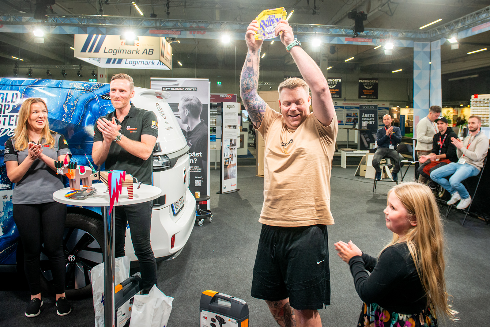 Simon Jokumsen vinner World Wrap Masters Sweden. Förutom att visa sin skicklighet i bilwrapping fick han även visa hur man kan foliera en liten träälg från Ikea, till sin dotters förtjusning.