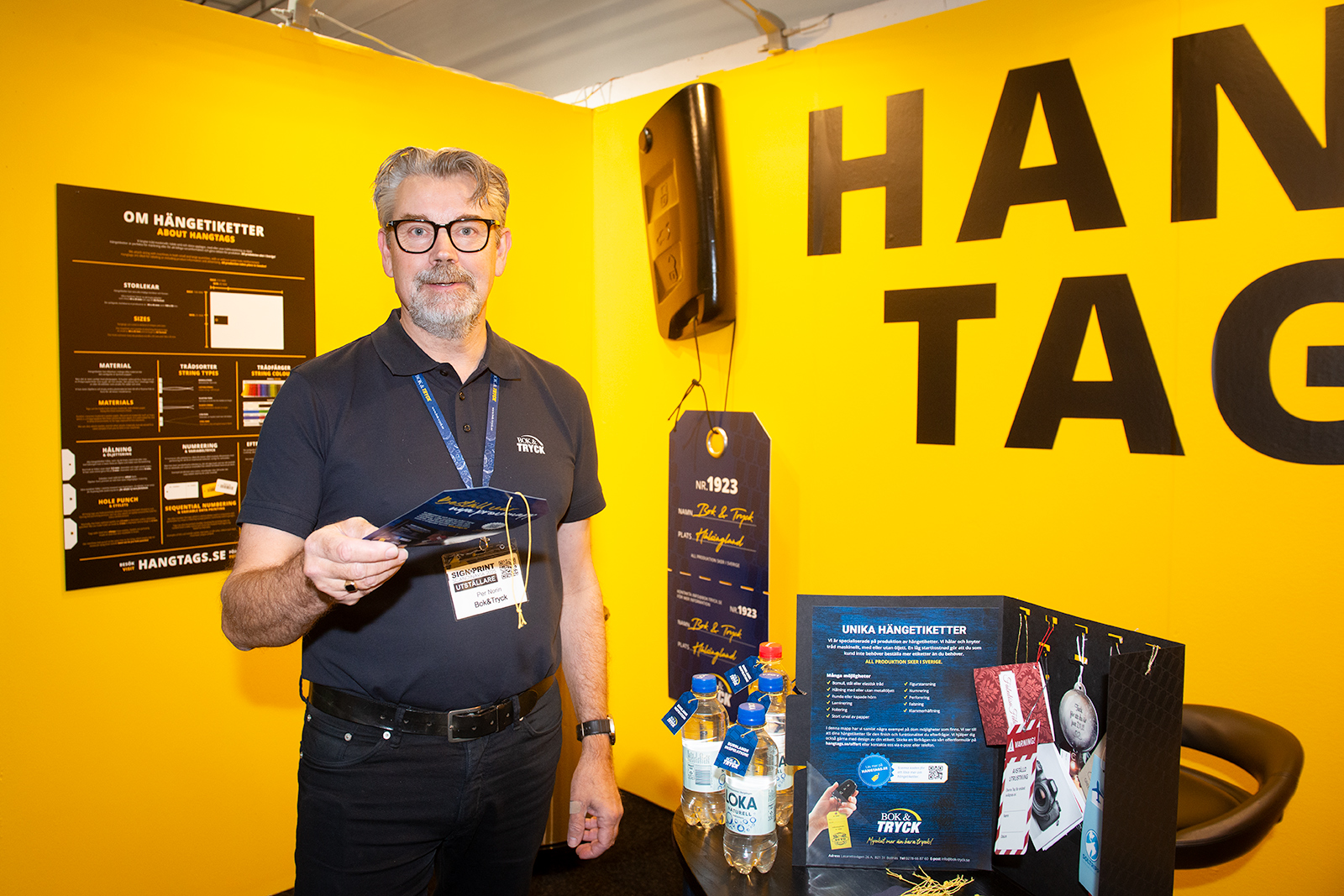Under mässan så är fokus helt på Bollnäsföretagets erbjudandet av hängetiketter till andra tryckerier.