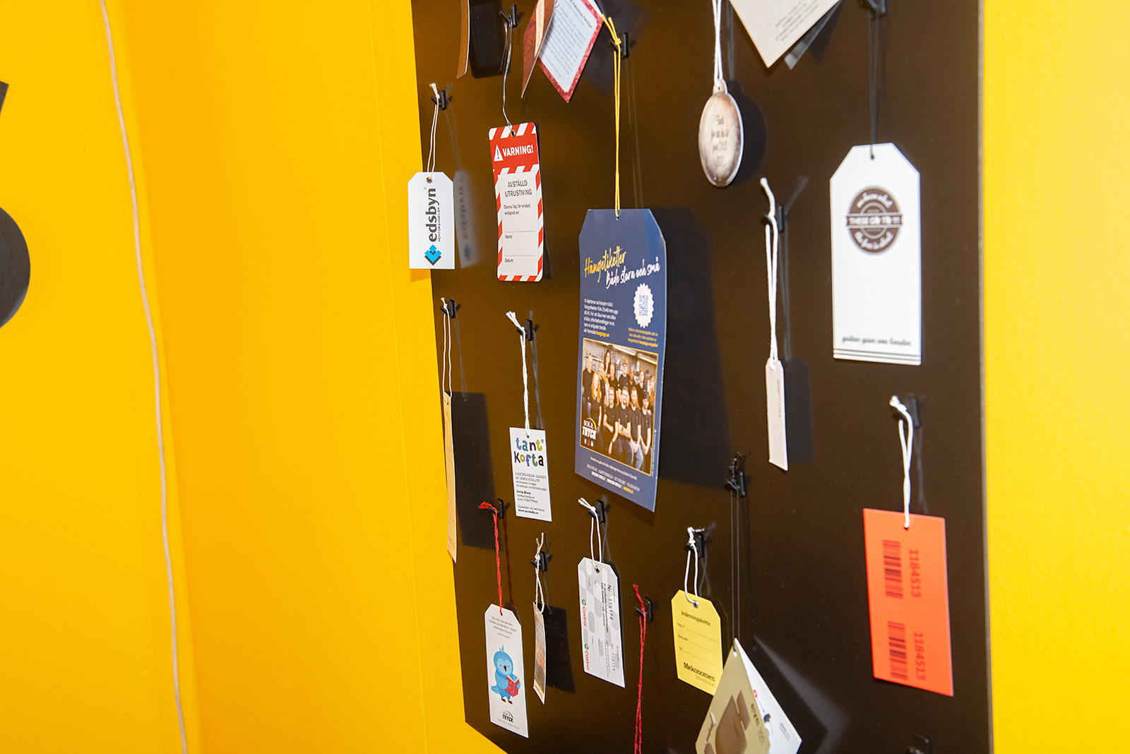 Till hängetiketterna knyter de bomullstråd, elastisk tråd eller ståltråd som används framförallt inom tillverkningsindustrin. Slutkunderna kan till exempel vara Scania eller Volvo. Andra etiketter används för till exempel till flaskor eller som kampanjmaterial.