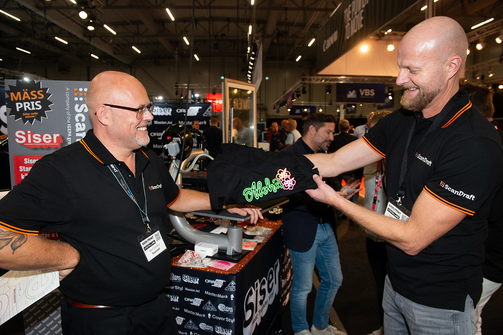 I Scandrafts mässmonter visade de också thermotransferfilm från Siser, nya gravyrmaskiner från Cyborg och dotterbolaget Rangefabrikens sortiment av aluminiumplåtprodukter.
