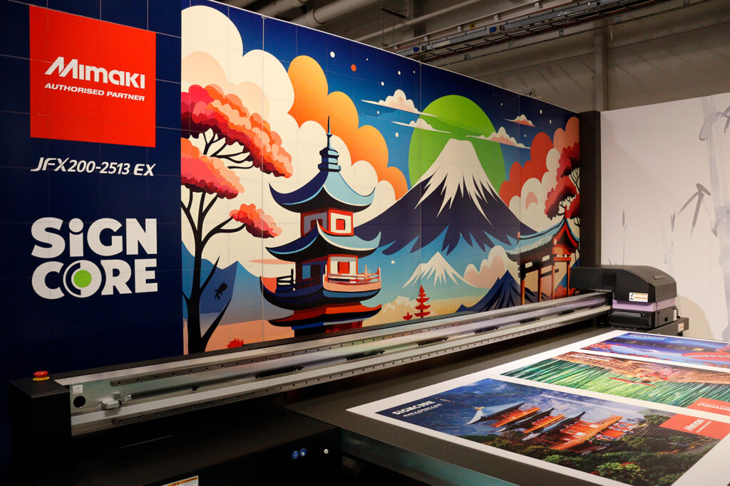 Med en stor monteryta kunde Signcore visa i princip hela sortimentet av maskiner, i lite olika utföranden, till exempel en maskin som finns både med och utan print and cut-funktion.