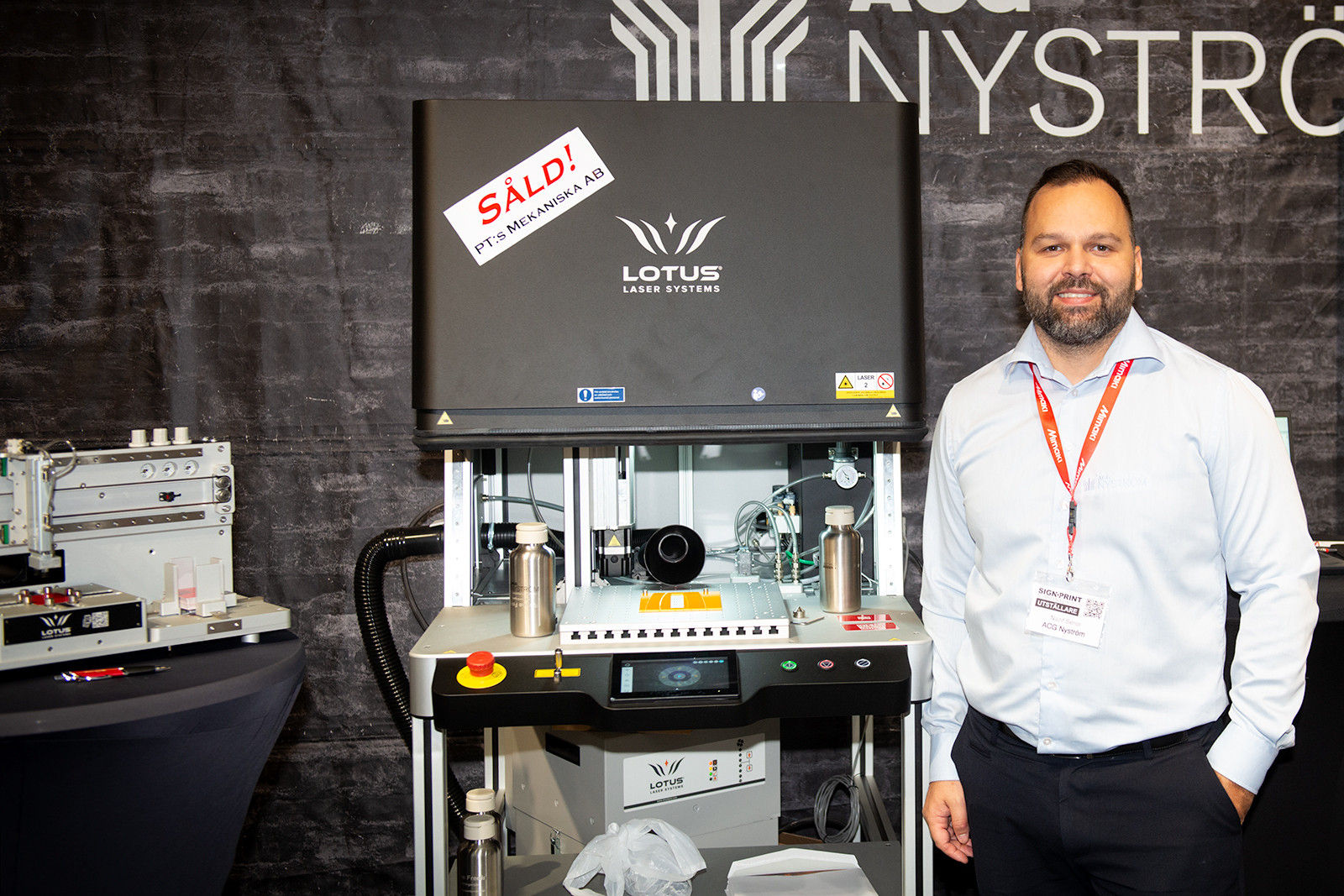 ACG Nyström introducerar sjunde versionen av fiberlasern Lotus Meta C MOPH Fiber 30 W för märkning och gravyr. Under mässdagarna såldes ett exemplar till PT:s Mekaniska.