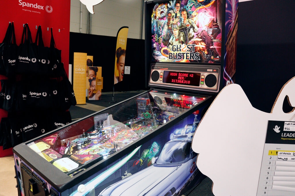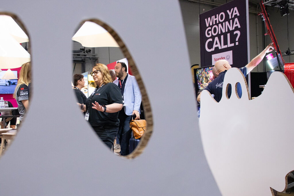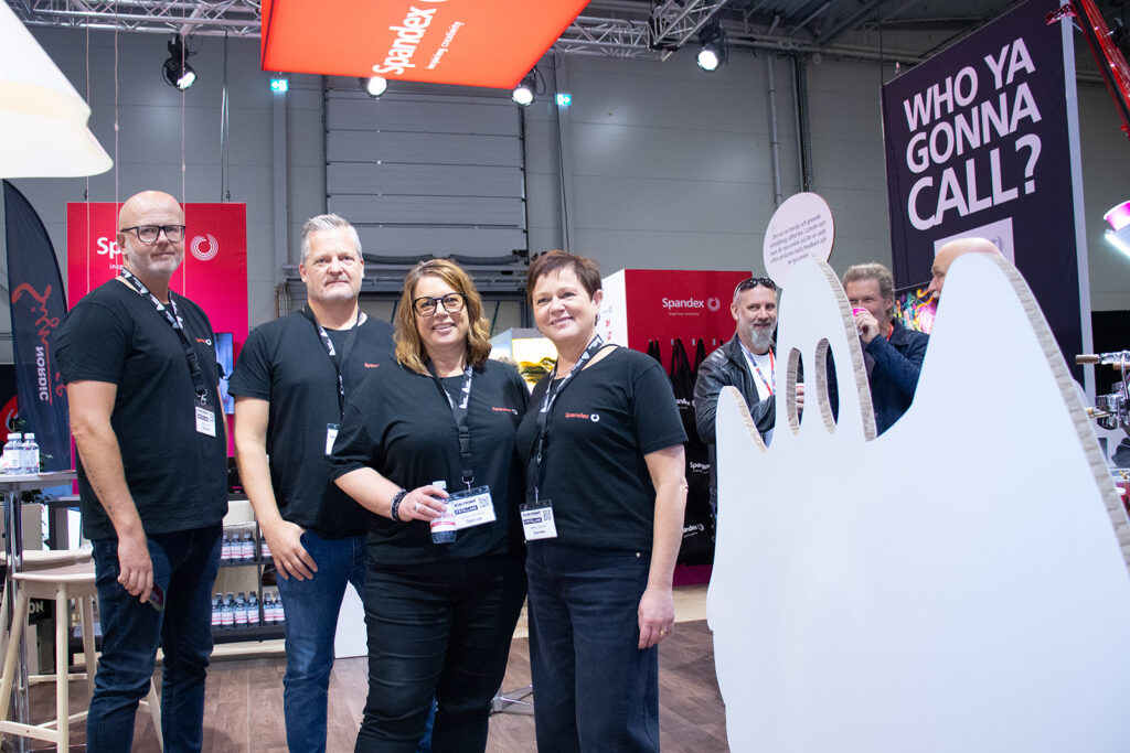 Spandex valde att lämna materialproverna och maskinerna hemma och istället fokusera på kundrelationer på mässan. Det gjorde de med ett Ghostbuster-tema.
