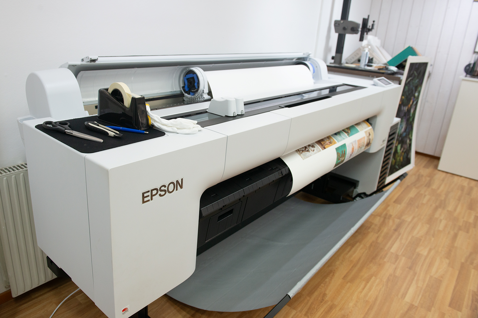 Fram till i somras hade de två äldre Epson Stylus Pro 18880 för storformatsutskrifter. Men eftersom det började bli svårt att få tag i reservdelar om något skulle gå sönder så bestämde de sig för att byta ut den ena.