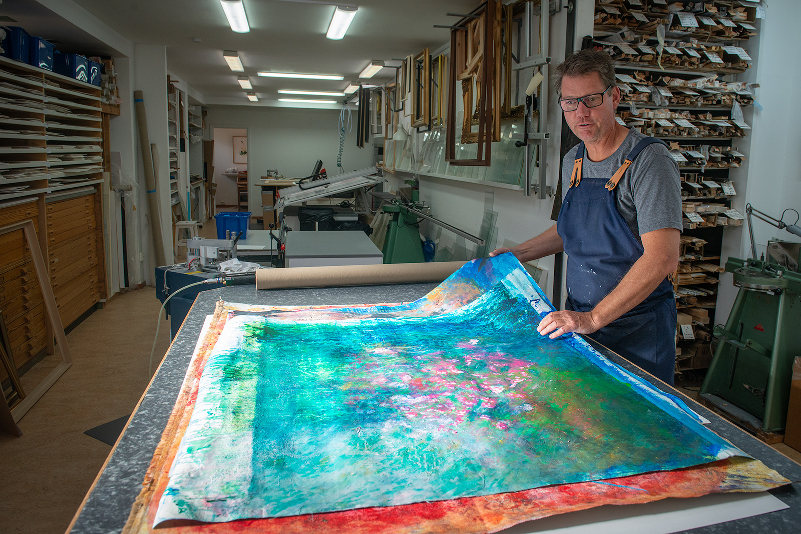För kunder med färdiga filer gör de testprintar innan det är dags för den slutgiltiga utskriften. Andra hjälper de hela vägen från reprofotografering av konstverken till utskrift.