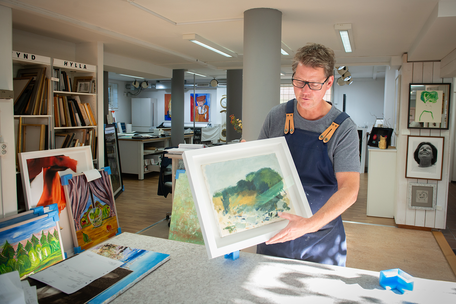 Ralf Ekvall förvärvade ramverkstaden 2021 och är den som sköter allt hantverk som inramning innebär. Företaget har sedan övertagandet utvecklats till att bli en helhetsleverantör av tjänster inom bildkonst.