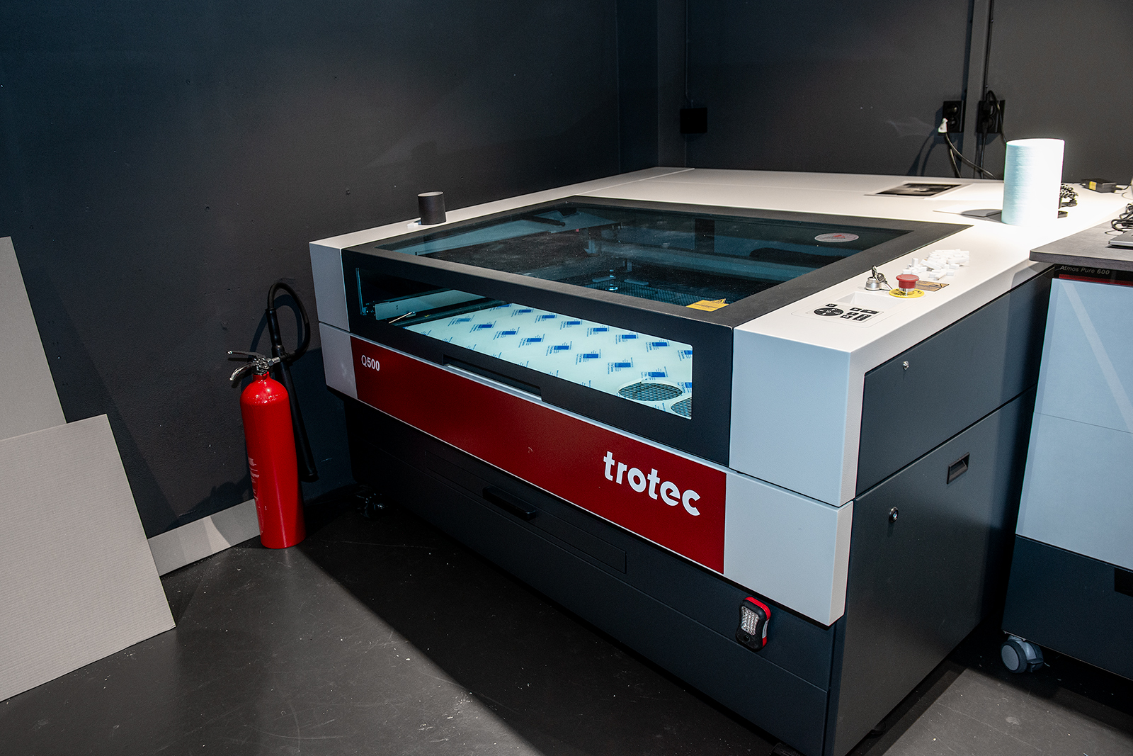 Valet blev lasermaskinen Trotec Q500 och ett nytt monteringsbord med laminering – en modulbyggd Kala Flatbed Laminator Applikator App4400L – köpt via NI Solutions.