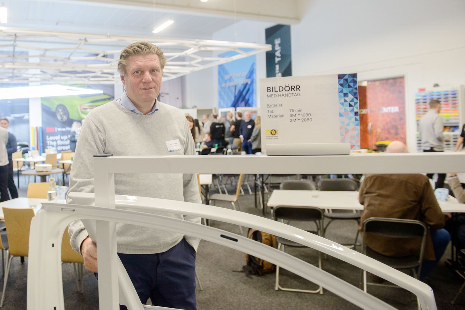 Efter föreläsningen fick besökarna prova olika typer av 3M:s wrappingfilmer på olika bildelar. 3M:s mönsterdatabas för PPF är omfattande (över 5 000 fordon) och uppdateras kontinuerligt med nya modeller. Skärprogrammet ingår utan kostnad vid köp av 3M PPF.