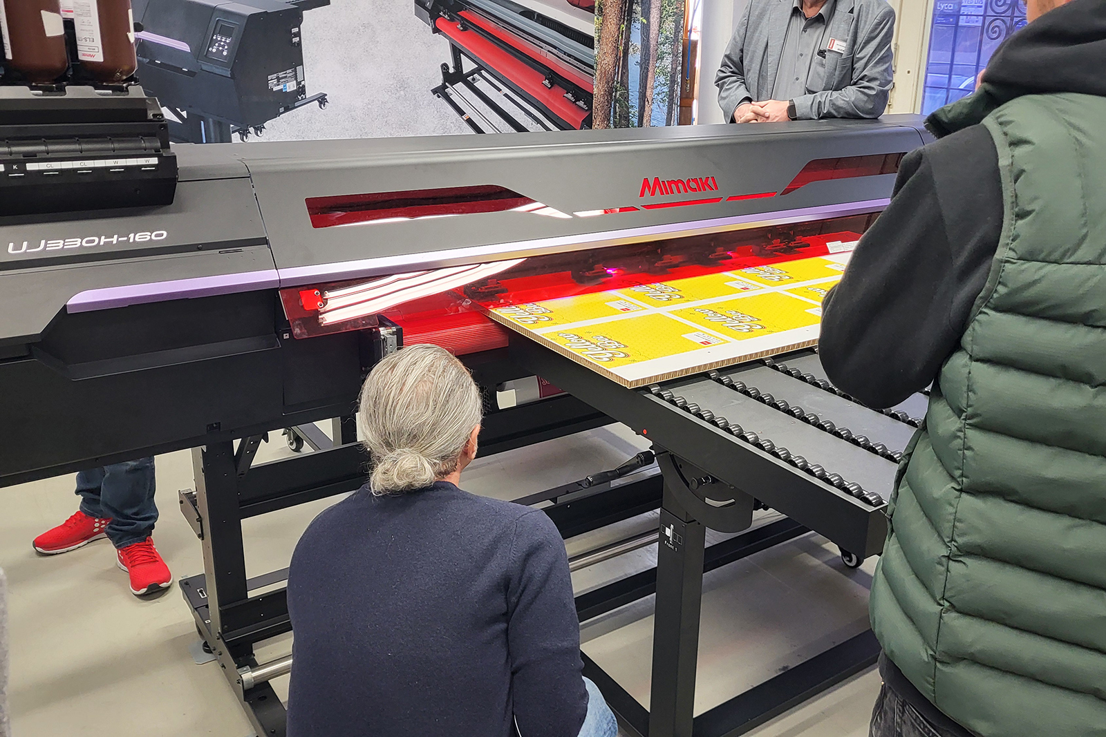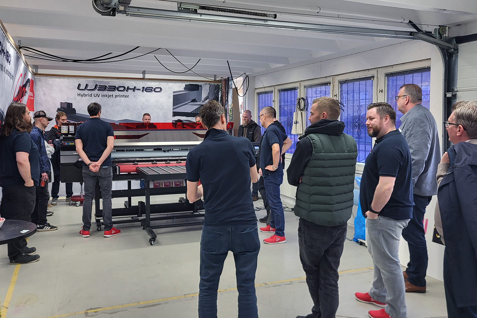 I fredags premiärvisade Color Systems den nya hybridskrivaren Mimaki UJ330H-160. Intresset var stort med långväga gäster.