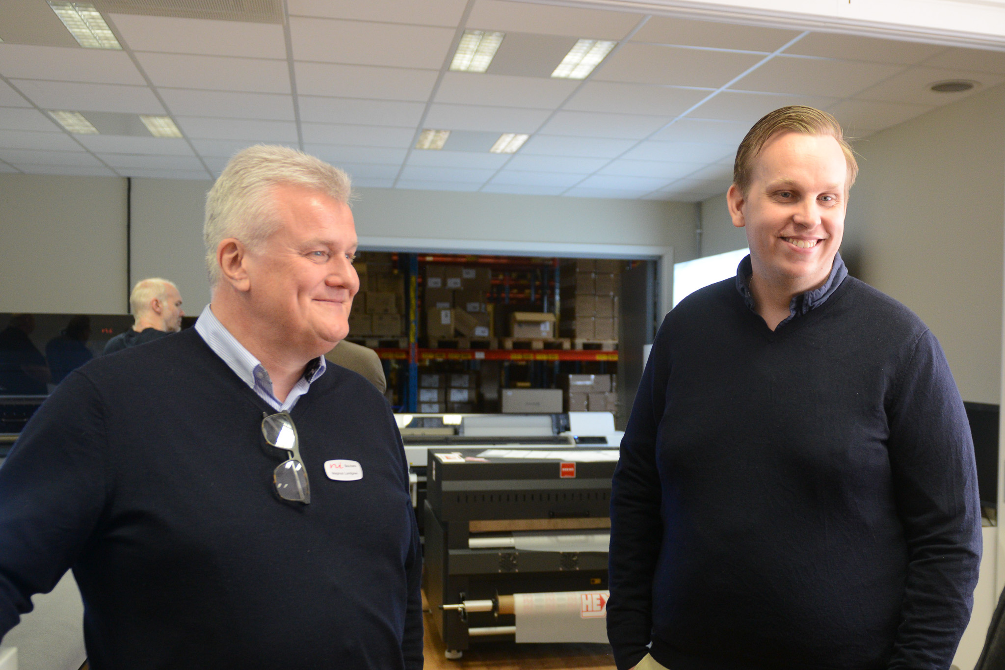 Sign&Print fick en rundvandring på lagret och tittade bland annat in deras stora automatiserade plockmaskin och ett stort lager av Epson-skrivare.