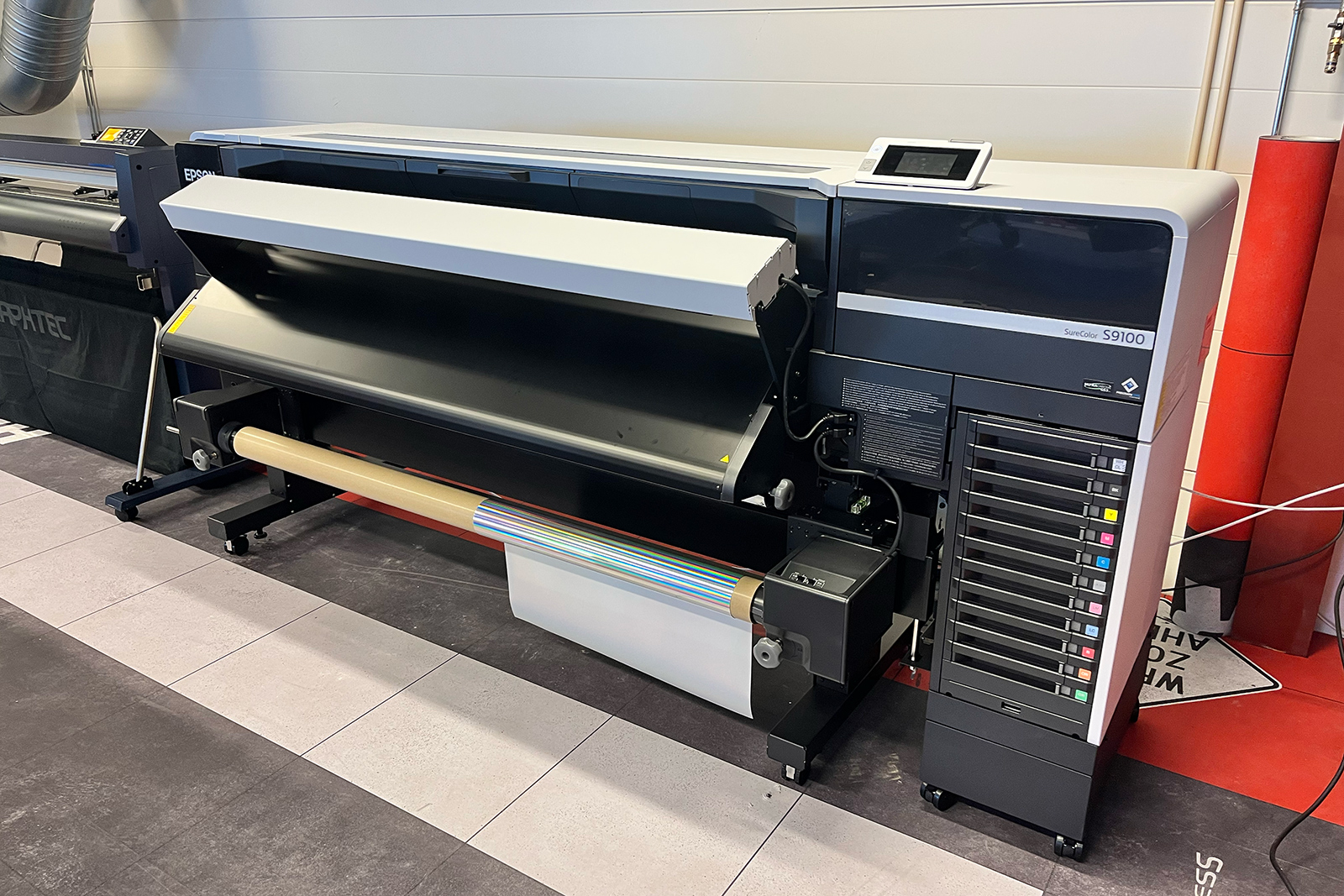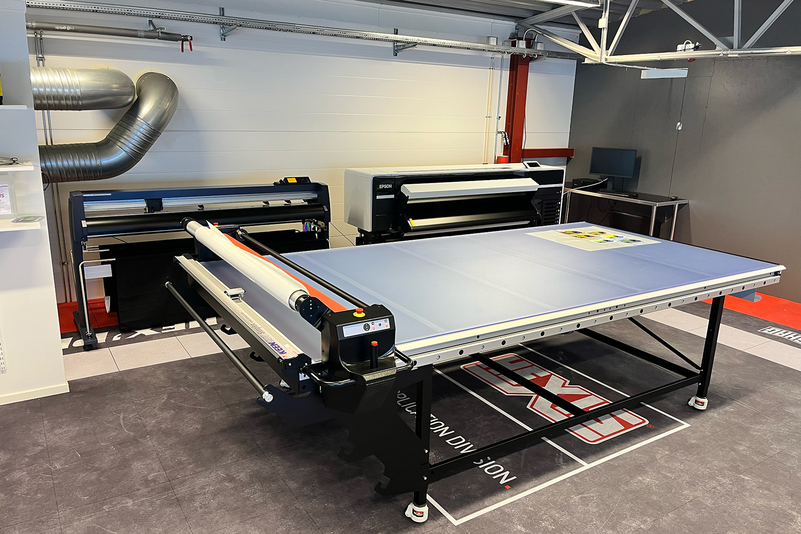 På plats finns storformatsskrivaren Epson SC S-9100, en Graphtec-skärmaskin och ett monteringsbord från Kala. Under dagen kommer även NI Solutions vara på plats och göra maskindemos.